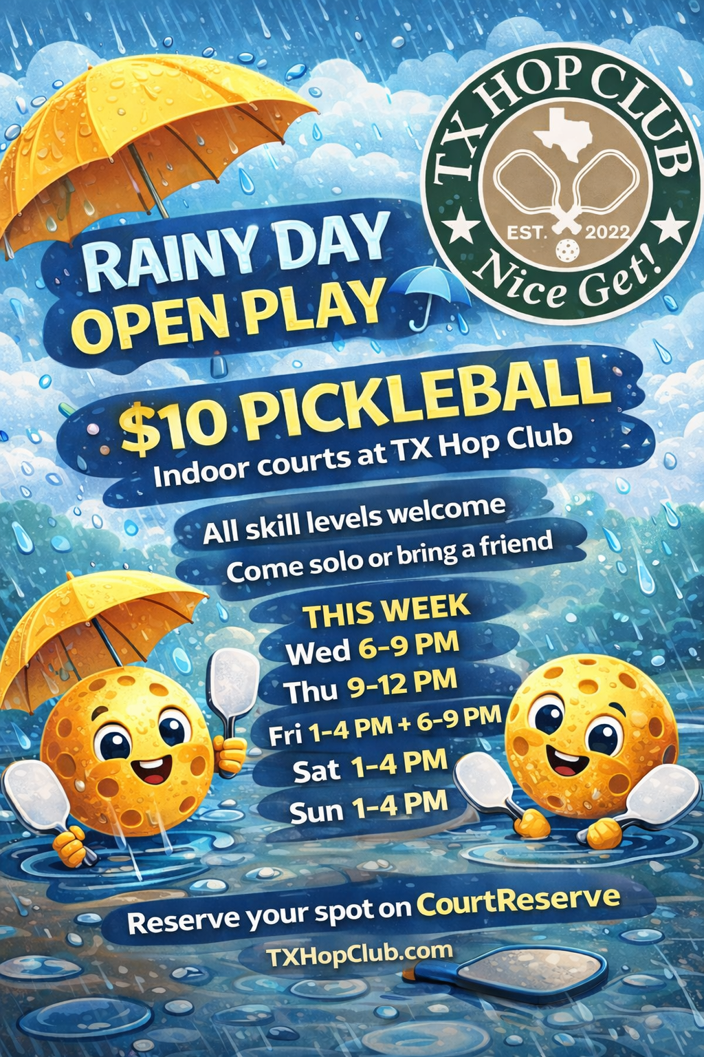 🔓 New to TX Hop Club? Click + create your FREE Court Reserve profile to unlock the calendar.